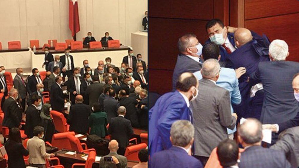 Στα χέρια πιάστηκαν οι βουλευτές, στη Μεγάλη Εθνοσυνέλευση της Τουρκίας, χτες, με αφορμή μία συζήτηση για μια πρόταση νόμου για τη "νυχτερινή φρουρά", καθώς βουλευτές από το κεμαλικό Ρεπουμπλικανικό Λαϊκό Κόμμα (CHP) και το Κόμμα Εθνικιστικού Κινήματος (MHP), του ηγέτη των Γκρίζων Λύκων, Ντεβλέτ Μπαχτσελί, κατέληξαν να γρονθοκοπούνται.